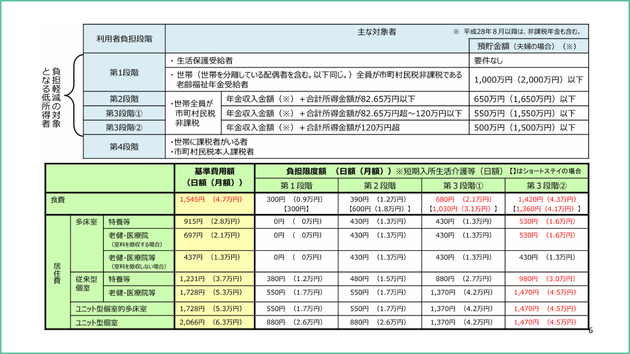 補足給付(低所得者の食費・居住費の負担軽減)の仕組み