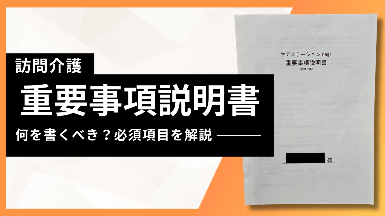 訪問介護サービスの開始時に、契約書とセットで必ず交わさなければならない「重要事項説明書」。