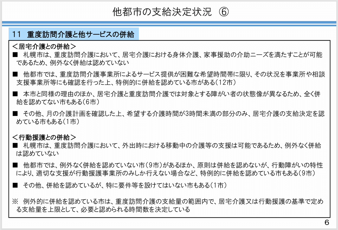 重度訪問介護と居宅介護の併用(併給)を認めるか否かは市町村の基準次第ではありますが、調査していく中で興味深い資料を発見しました。