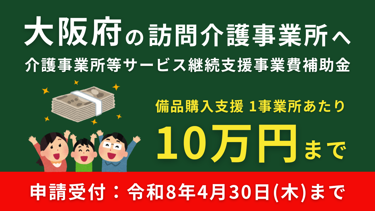 申請受付は、令和8年4月1日(水)よりすでに開始されており、締め切りは同年4月30日(木)までとなっています。本記事では、大阪府の交付要綱に基づき、訪問介護事業所が活用できる備品購入支援の対象経費や申請要件、注意点などを詳しく解説します。