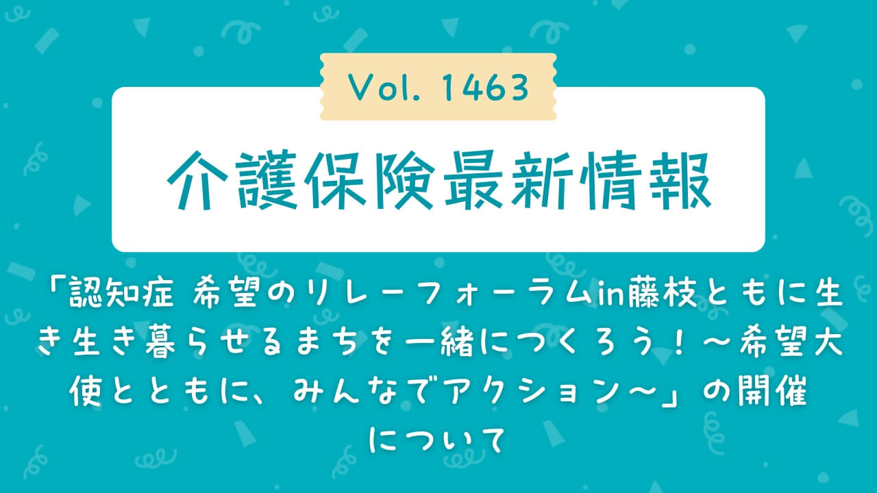 令和8年1月21日、厚生労働省は、介護保険最新情報vol.1461「「認知症 希望のリレーフォーラムin藤枝ともに生き生き暮らせるまちを一緒につくろう!~希望大使とともに、みんなでアクション~」の開催について」を発出しました。
