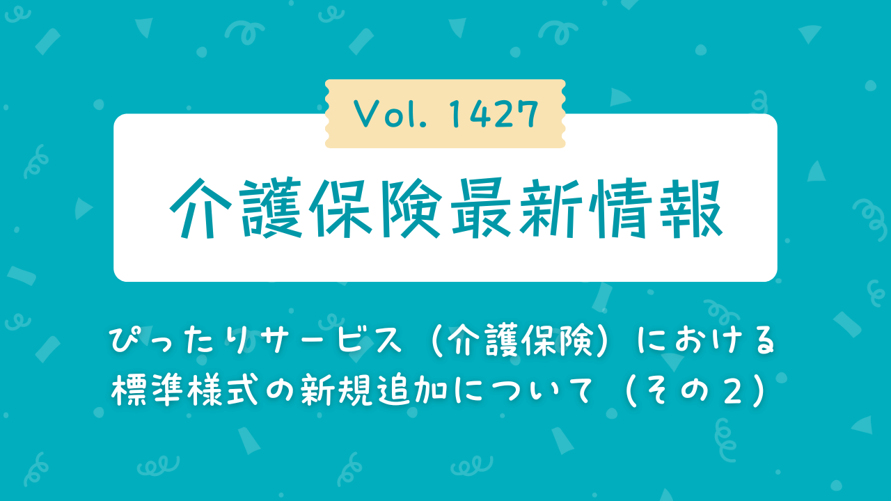 【厚労省通知vol.1427】ぴったりサービス(介護保険)における 標準様式の新規追加について(その2) 厚生労働省通知 2025.10.21 令和7年10月17日、厚生労働省は、介護保険最新情報vol.1427「ぴったりサービス(介護保険)における 標準様式の新規追加について(その2)」を発出しました。 スポンサーリンク 介護保険最新情報vol.1427の原文 本通知の原文は、以下より確認してください。 ⇒介護保険最新情報vol1427の原文をみる