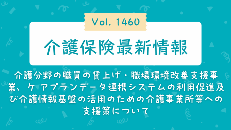 令和8年1月13日、厚生労働省は、介護保険最新情報vol.1460「介護分野の職員の賃上げ・職場環境改善支援事業、ケ アプランデータ連携システムの利用促進及び介護情報基盤の活用のための介護事業所等への支援策について」を発出しました。