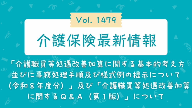 令和8年3月13日、厚生労働省は、介護保険最新情報vol.1479「「介護職員等処遇改善加算に関する基本的考え方並びに事務処理手順及び様式例の提示について(令和8年度分)」及び「介護職員等処遇改善加算に関するQ&A(第1版)」について」を発出しました。